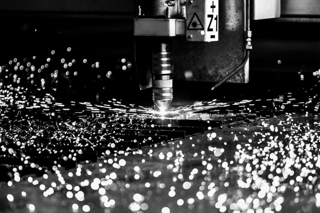 Mit unserer 4 kW Faserlaseranlage schneiden wir dünnere Baustähle bis 12 mm sowie Edelstahl bis 8 mm bei Bauteilgrößen bis 3000 × 1500 mm.